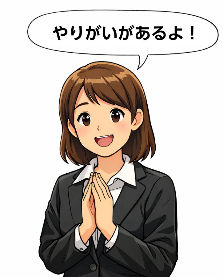また、どうしても休まなくてはならないことがあって、恐る恐る先輩に相談したら「遠慮しないで休んでいいんだぞ!仕事のことは俺たちに任せろ!」と笑って答えてくれました。もちろん仕事に関しては厳しいけど、変なイジメやいじわるはまったくない職場だよ!